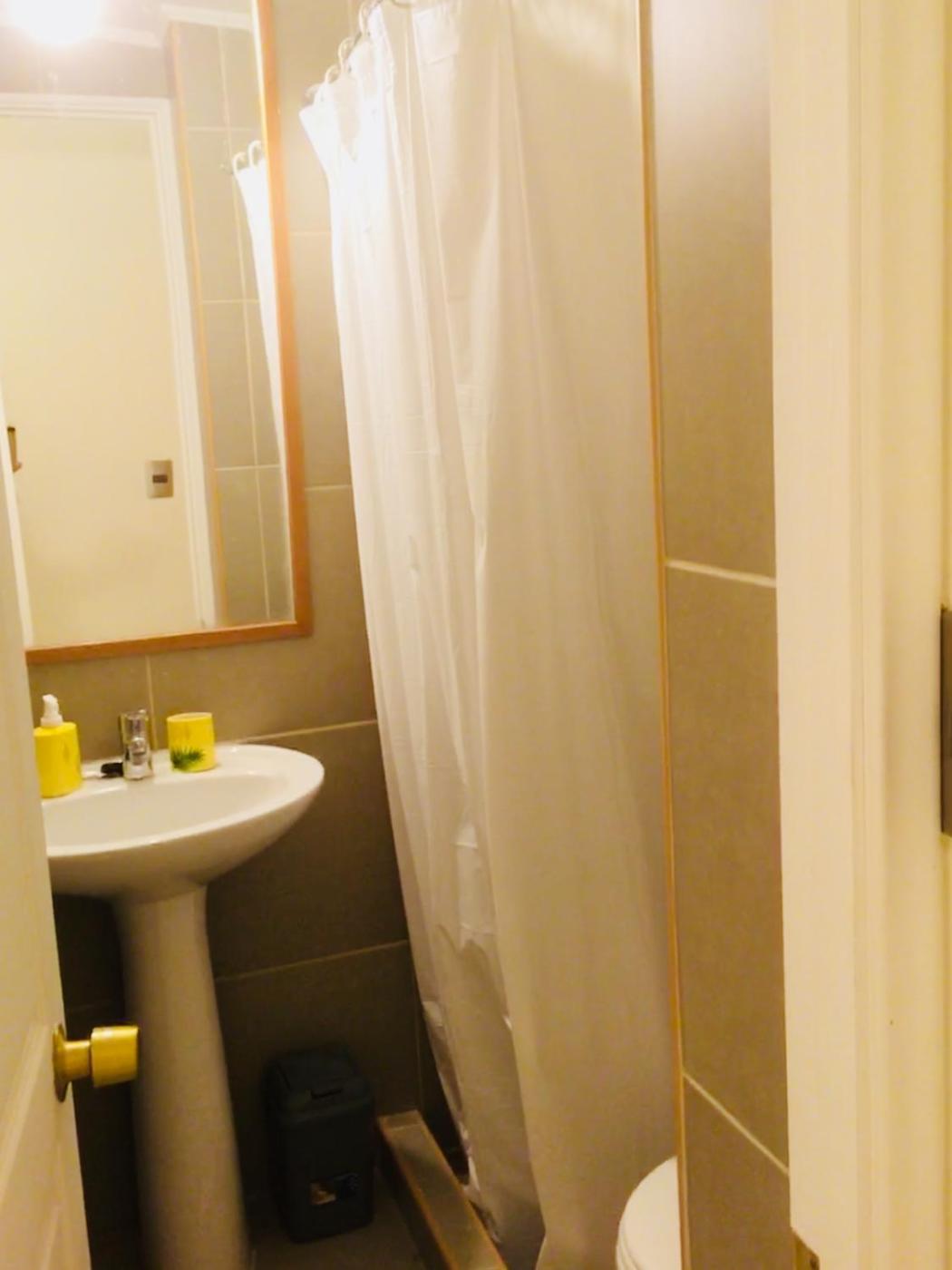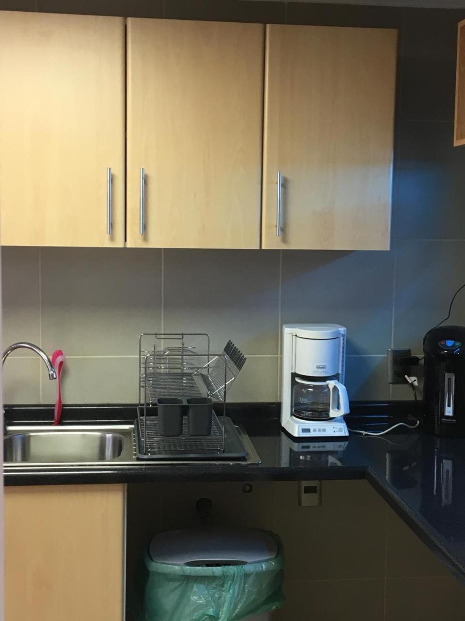 También hay nevera y hervidor.